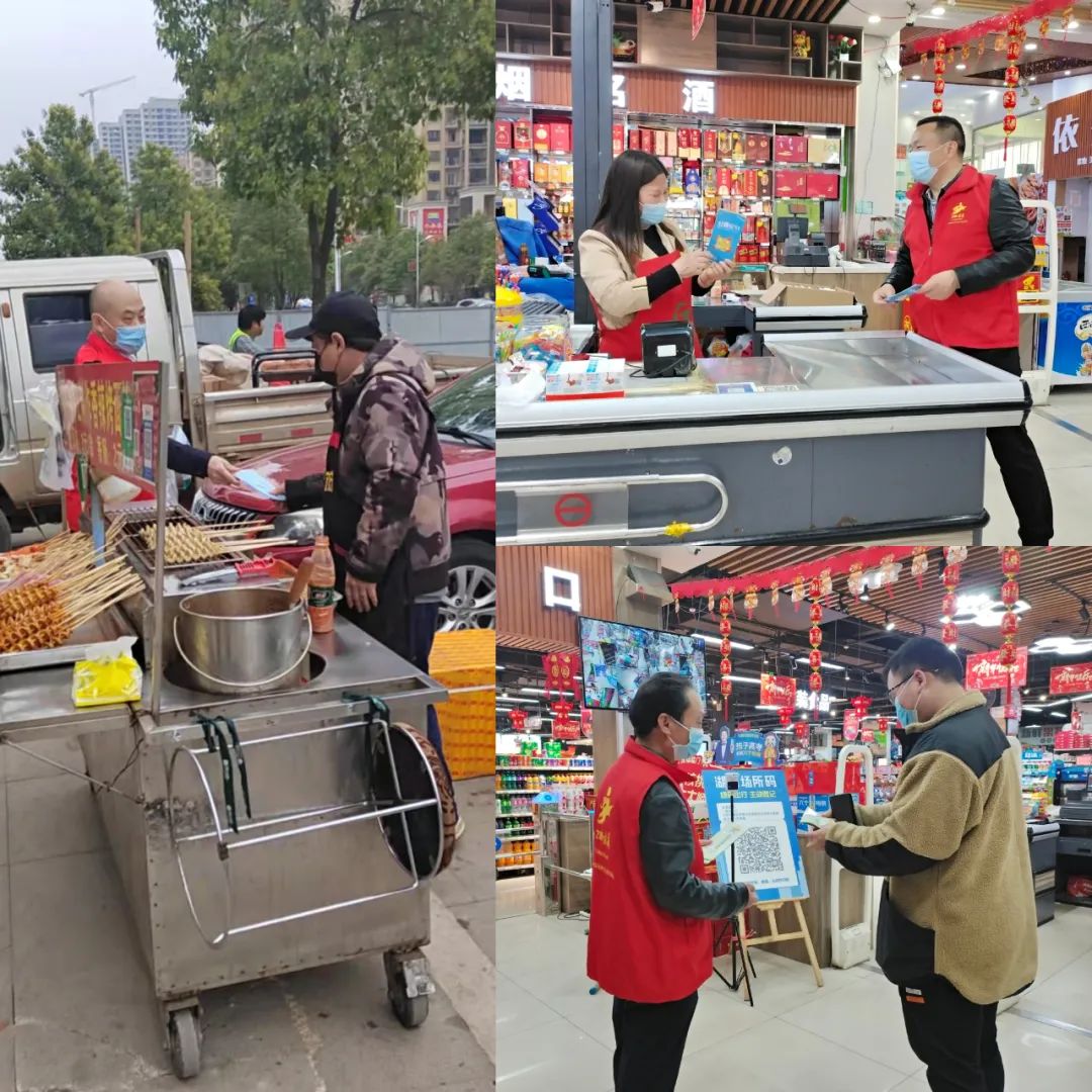 防疫工作,人人有責(zé)。當(dāng)天下午,全體志愿者配合社區(qū)監(jiān)管部門對社區(qū)周邊所有商場超市、街道餐飲店、藥店等進行全面檢查、走訪,實地查看常態(tài)化疫情防控政策落實情況,做到進店測溫、掃碼、佩戴口罩,做好個人防護措施。同時注重對疫情防控相關(guān)措施的宣傳引導(dǎo),積極向經(jīng)營戶和消費者普及疫情防控知識,切實增強人民群眾的自我保護意識和防控意識。